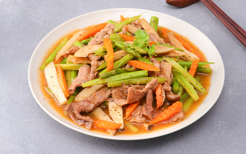3.2 Thịt bò xào măng tây nấm đùi gà