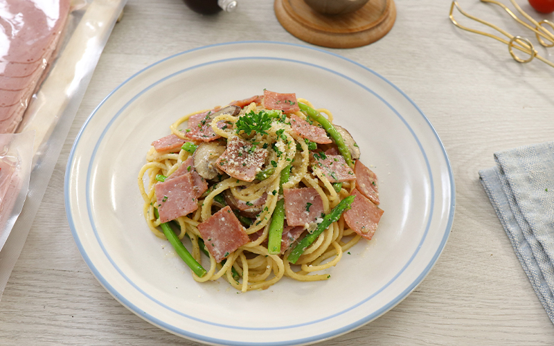 Gợi ý chi tiết cách làm Mì ý dăm bông xào măng tây